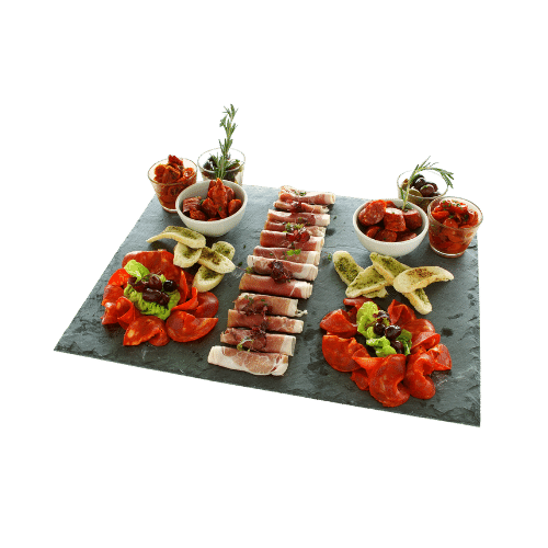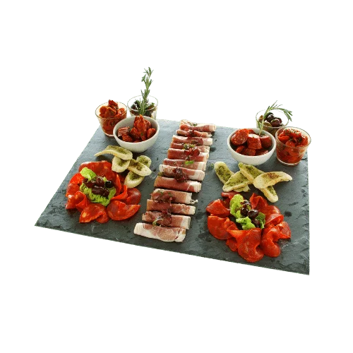 Volante e empratados! Serviço começa ao estilo volante/finger food, e após as entradas e aperitivos, serão servidos aos convidados sentados na mesa, os pratos principais e sobremesas empratados.